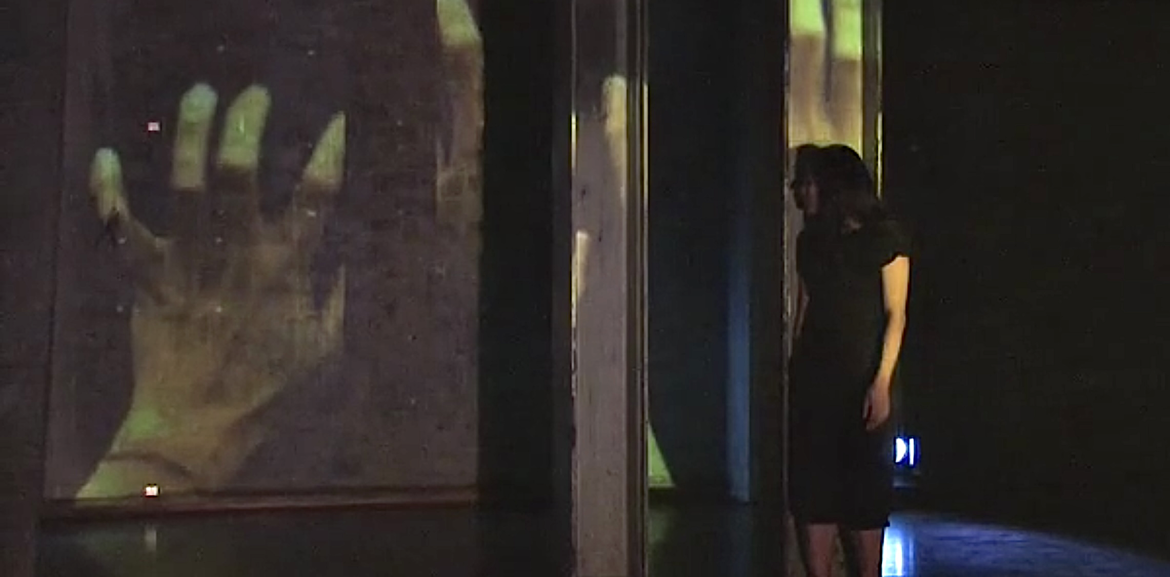 Scene from The Borrowed Language with Kobie’s video mapping projections